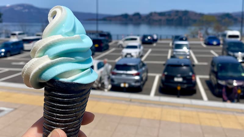 りんごのソフトクリームと迷いましたが、やはり湖の道の駅に来たからには湖の名前がついたソフトクリームを食べなければ!