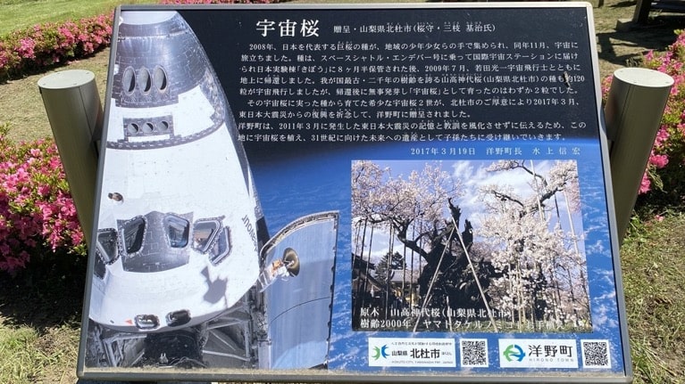 ここは路駐禁止なので、天文台の駐車場をお借りして降りて行ったところ宇宙桜という桜が植ってました。